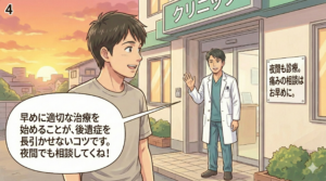 帯状疱疹の疑い(体の片側にピリピリした痛みや発疹)が出たら、一刻も早くクリニックを受診し、抗ウイルス薬の内服を開始すること。これが重症化を抑制する最大の鍵です。