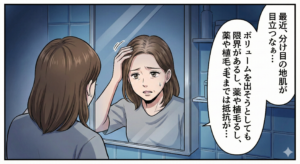 「分け目やつむじの地肌が目立つ」