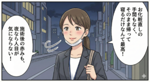 施術後すぐにメイクが可能で、仕事帰りにも受けやすい治療です。
